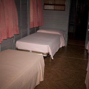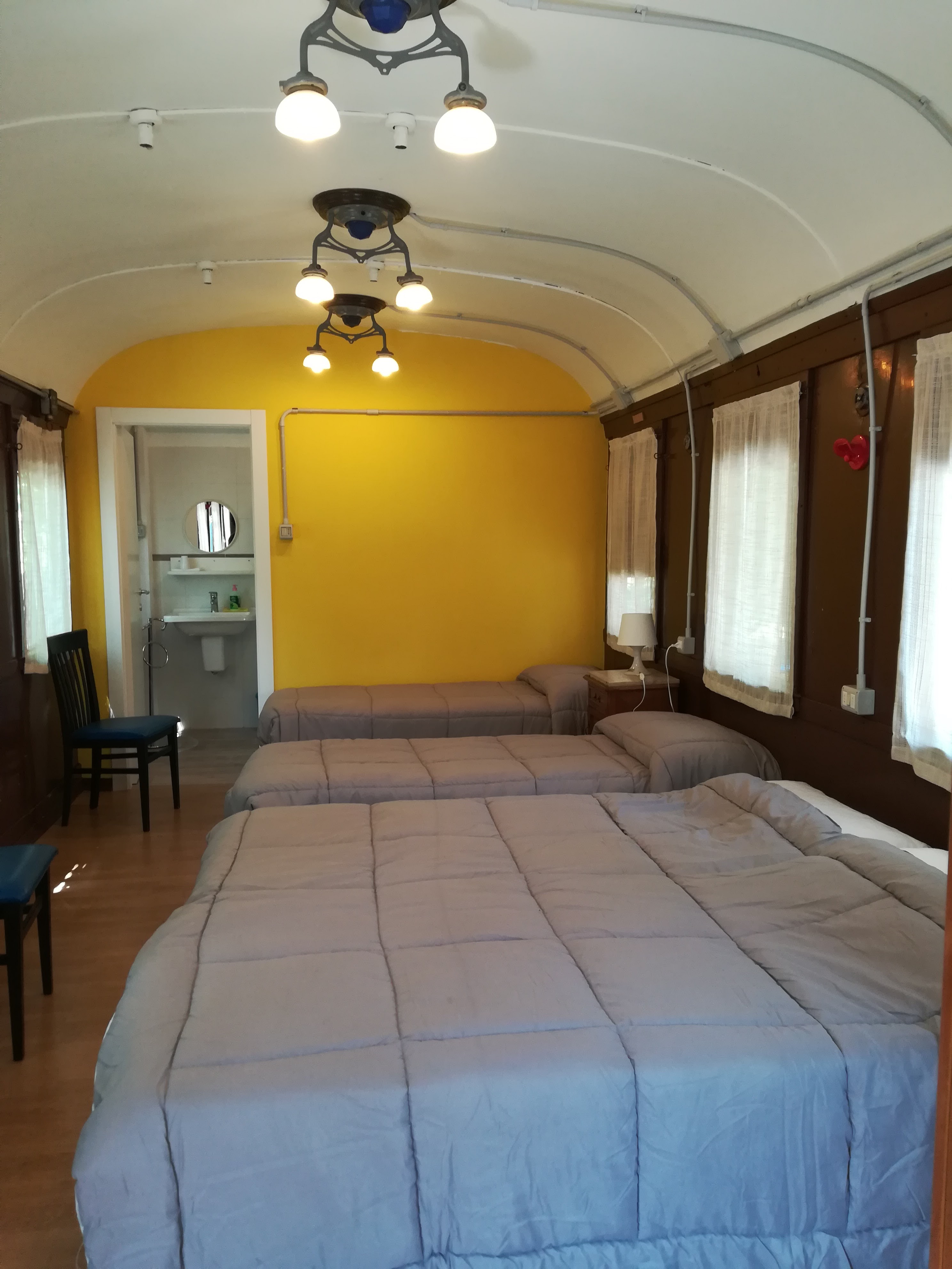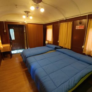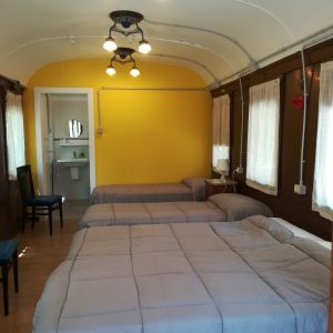 Ogni vagone è un ambiente indipendente e può accogliere fino a 10-12 ospiti. Rimodernati e accoglienti, ciascuno dei vagoni è organizzato con letti a castello più servizi. Anche per i gruppi è possibile scegliere se usufruire del servizio mensa del Treno dei Bimbi oppure optare per una gestione autonoma dei pasti utilizzando la “cambusa da campo” dotata di frigorifero, lavandino per piatti e stoviglie e cucina a gas, appositamente allestita vicino alle camere.